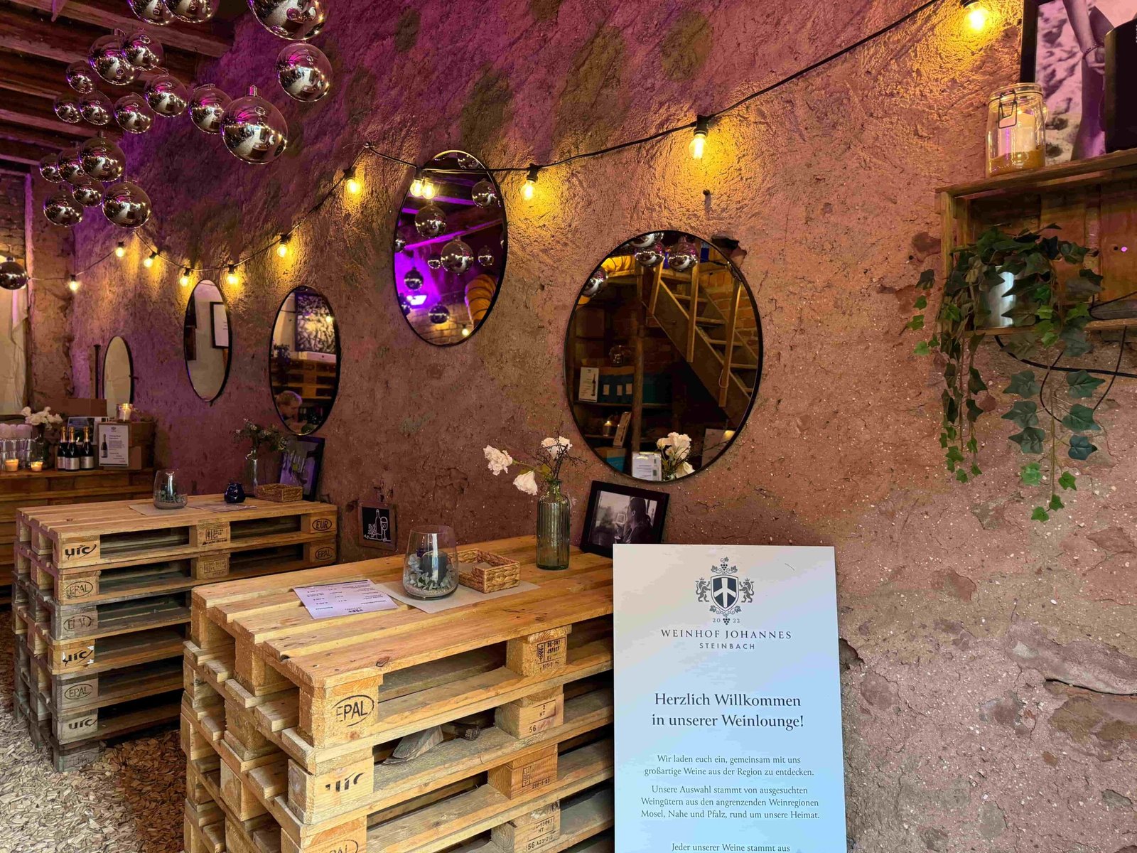 Unser Zuhause liegt im Herzen des Saarlandes, inmitten des idyllischen Ortskerns von Steinbach bei Ottweiler. Von hier aus wählen wir mit großer Sorgfalt Weine aus familiengeführten Weingütern unserer unmittelbaren Heimatregion aus. Unsere Philosophie ist dabei klar und bodenständig: Alle Weine stammen ausschließlich aus einem Umkreis von maximal 100 Kilometern rund um unseren Heimatort. So bieten wir unseren Gästen unter anderem Rieslinge aus den steilen Schieferlagen der